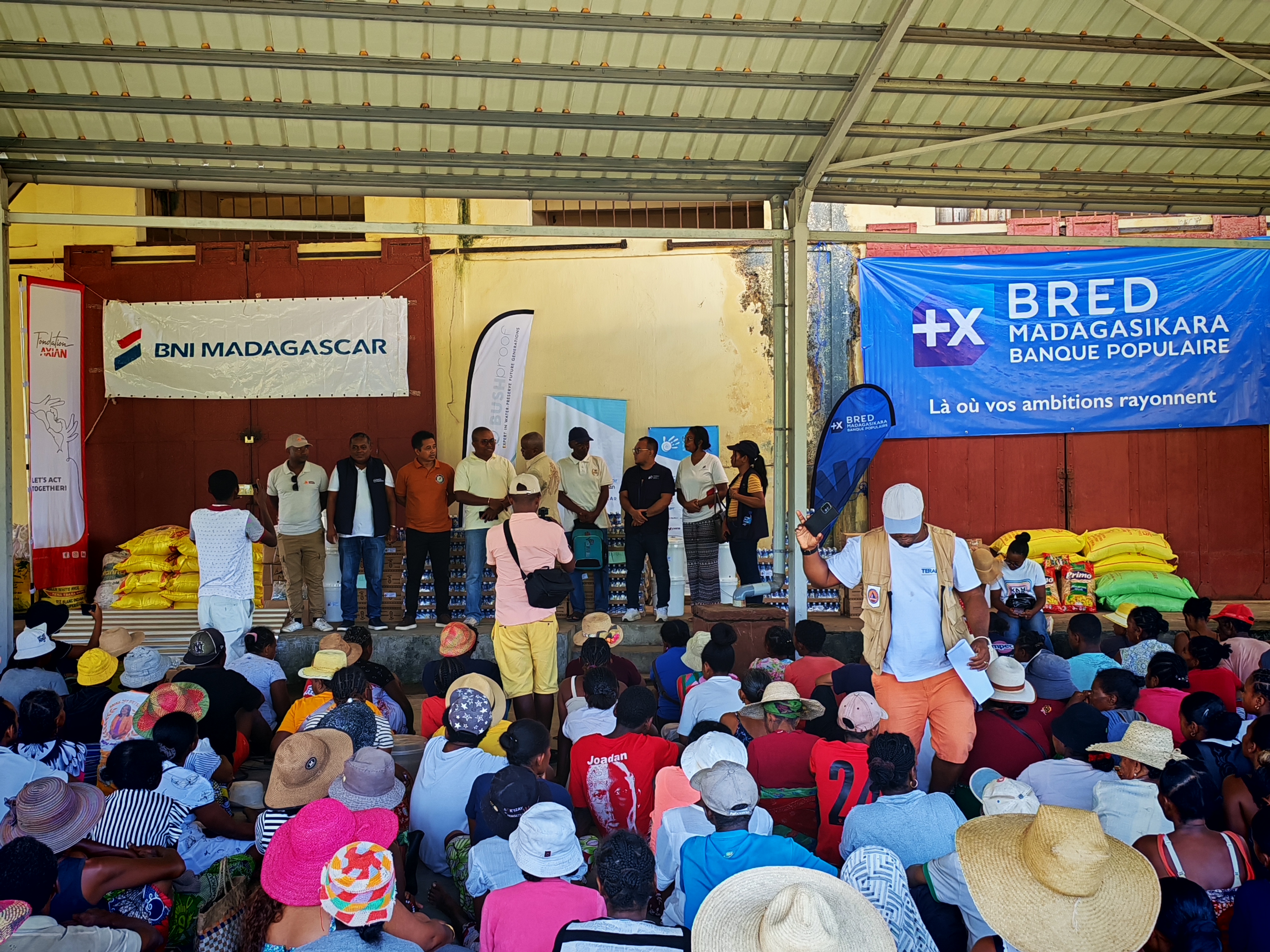 BRED Madagasikara BP, BNI MADAGASCAR, Bushproof et AXIAN Group ont contribué à cet appel en apportant des équipements d’habitat (tôles et accessoires), ainsi que des vivres (riz, sucre, pâtes, huile) et des kits WASH , assurant hygiène et accès à l’eau potable pour les familles touchées.